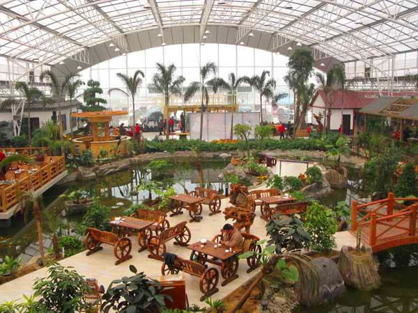 生態(tài)餐廳:生態(tài)餐廳又稱“綠色餐廳”,是現(xiàn)代都市倡導的一種新的休閑理念,是近年來人們對健康飲食的追求和對田園風光的向往而興起的一種新型餐飲形式。與傳統(tǒng)餐廳的功能相比,生態(tài)餐廳更加注重人與自然的和諧,人與環(huán)境的綠色平衡,是通過現(xiàn)代化智能溫室和原生態(tài)自然景觀的有機融合,營造一種綠色、健康的就餐環(huán)境;并通過溫度、濕度的控制,達到室內四季如春。