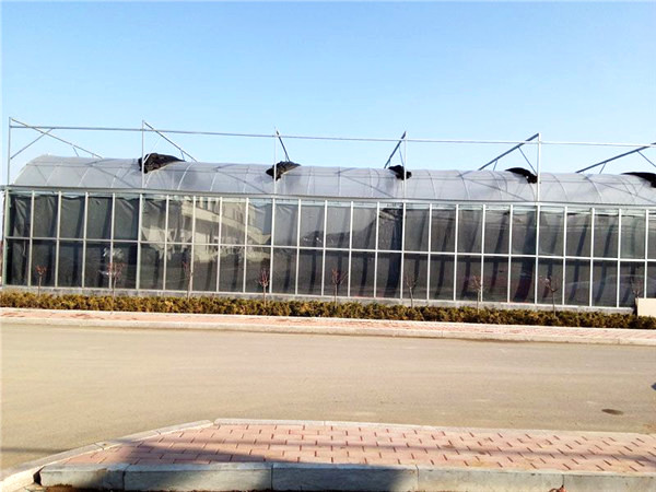 采用熱鍍鋅鋼制骨架,覆蓋材料為5mm鋼化玻璃,透光率在九十以上。溫室大棚頂部及四周為專用鋁型材。溫室大棚頂部為雙向開窗,齒輪齒條副傳動。根據用戶需要,溫室大棚兩個端面可安裝濕簾和風機,也可在兩個端面及側面安裝鋁型材推拉窗、平開窗或外翻窗。
