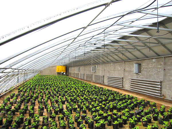 前坡面夜間用保溫被覆蓋,東、西、北三面為圍護墻體的單坡面塑料溫室,統稱為日光溫室。其雛型是單坡面玻璃溫室,前坡面透光覆蓋材料用塑料膜代替玻璃即演化為早期的日光溫室。日光溫室的特點是保溫好、投資低、節約能源,非常適合我國經濟欠發達農村使用。